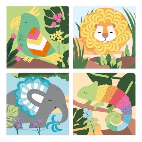 Децата развиват своите умения и креативност, докато декорират картите с четири животни от джунглата – лъв, слон, хамелеон и папагал.