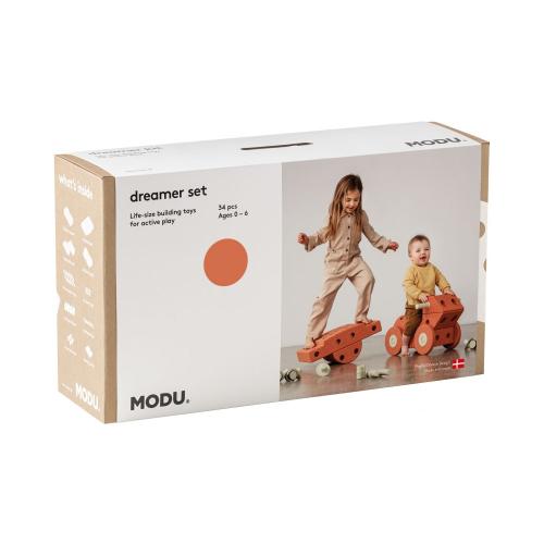 Игралният комплект Modu Dreamer set е многофункционална играчка за упражняване на основни двигателни умения на вашия малчуган. Нека най-смелите ви мечти се сбъднат! Изградете повече от 25 уникални играчки и творения в реален размер с Dreamer set - с него можете да яздите, да се люлеете, да скачате, да се катерите и да балансирате! Комплектът е идеален за споделяне между братя и сестри и е чудесен, ако искате да се насладите на безкрайни творчески възможности. Изградете проходилка за вашето мъниче, докато най-големият ви тръгва на разходка, или изградете сложни творения, за да предизвикате вътрешния си инженер - като кухня за игра или закрита пързалка. Забавлението започва в процеса на изграждане и продължава през годините на активна игра.