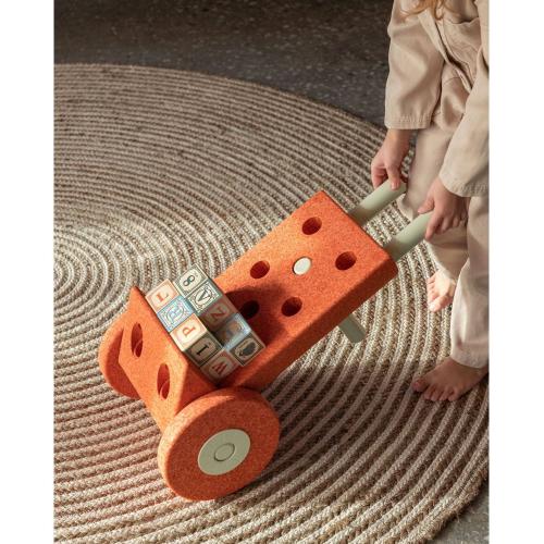 Изработен е от 100% рециклируема EPP пяна и хранителен ABS. За почистване просто избършете с влажна кърпа, като може да се почиства и в съдомиялна машина. Комплектът е подходящ за деца 0 до 6 годинки (с максимално тегло до 50 kg) и останалата част от семейството.