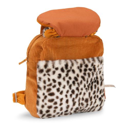 Открийте раничката със зайче от колекцията "Гората Мава" на френската фирма Moulin Roty. Чанта от мека материя, която ще придружава мъничето ви по време на разходки или в детската градина. Симпатична раничка със зайче в цвят градински чай с меки ушички, изработена от хавлиен плат и кадифе. Практична, тя има преден джоб с лепенка, закопчаване с цип, регулируеми презрамки и кука за закачане.