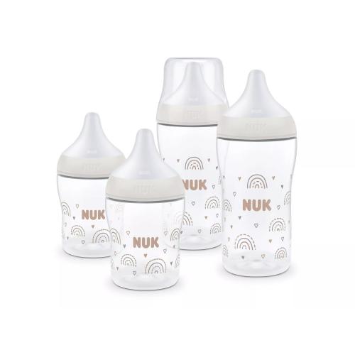 Сетът NUK Perfect Match Perfect Start включва всичко необходимо за храненето и грижата за Вашето бебе. Той съдържа четири шишета с които отговарят на нуждите на новороденото и по-големите бебета. Специално проектираните силиконови биберони се адаптират към устните на детето, осигурявайки комфортно и естествено хранене.Този комплект е идеален избор за плавен преход и правилно хранене през различните етапи на развитие на Вашето дете.