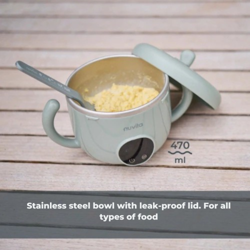 В допълнение към дългото време на употреба, електрическият уред за затопляне на бебешка храна от Nuvita се откроява със своята практичност: вътрешността от неръждаема стомана осигурява равномерно разпределение на топлината, а капакът предотвратява разливане и протичане.