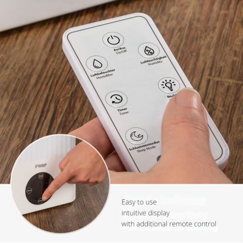 Овлажнителят 2 в 1 може да се регулира, за да отговаря на вашата домашна среда. Нивото на овлажняване може да се контролира гъвкаво с помощта на трите различни настройки на парата. Не сте сигурни коя настройка за пара е най-добра? Няма проблем: Като въведете желаното ниво на влажност, можете да осигурите оптимален вътрешен климат. След това овлажнителят ще измерва влажността на редовни интервали и автоматично ще регулира настройката за пара съответно.